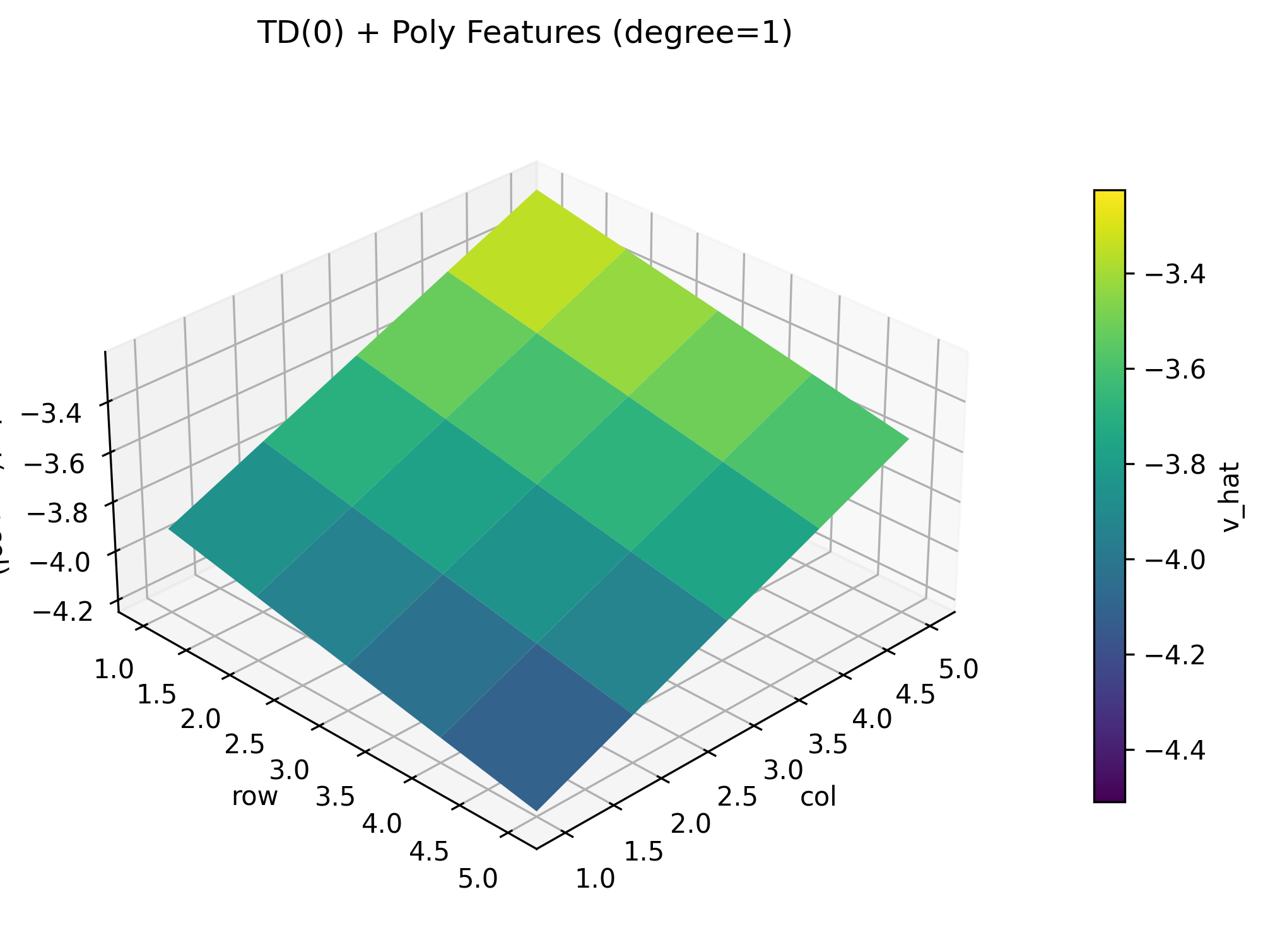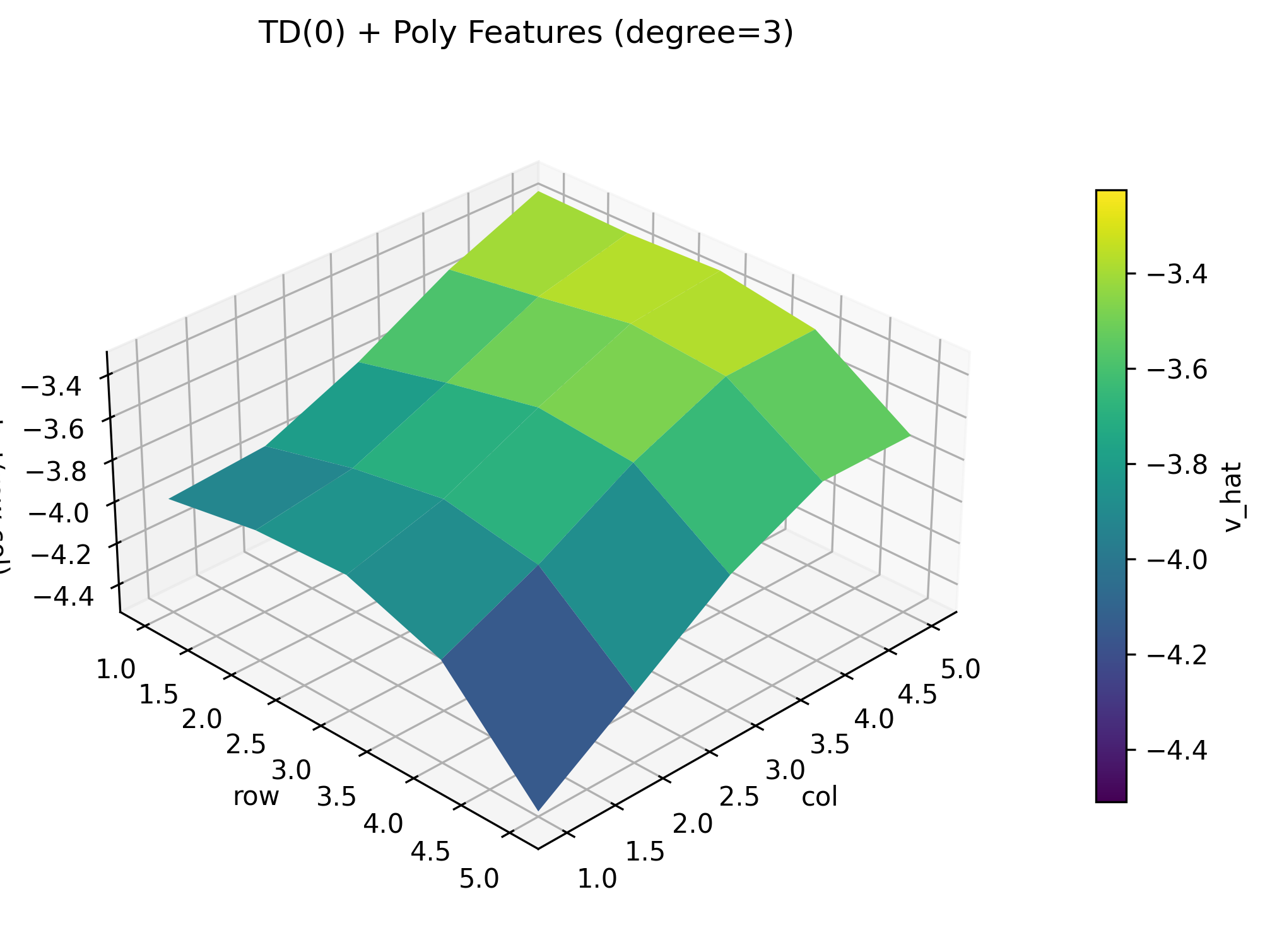 ax.set_title(f"TD(0) + Poly Features (degree={deg})")