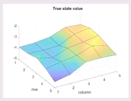 np.linalg.solve(A, b)是 NumPy 里用来解线性方程组的函数:它直接求出满足 $Ax = b$ 的 $x$ 的值. 因此原先 $v = r_{\pi} + \gamma P_{\pi}v$ 被移项成了: $(I - \gamma P_{\pi})v = r_{\pi}$我们只需要构造出来 $A$ 和 $r_{\pi}$ 就可以求解出 $v$ 的值.